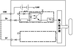 接到PLC輸入接口的輸入器件是:各種開關、按鈕、傳感器等。各種PLC的輸入電路大都相同,PLC輸入電路中有光耦合器隔離,并設有RC濾波器,用以消除輸入觸點的抖動和外部噪聲干擾。PLC輸入電路通常有三種類型:直流(12∽24)V輸入、交流(100∽120)V輸入與交流(200∽240)V輸入和交直流(12∽24)V輸入